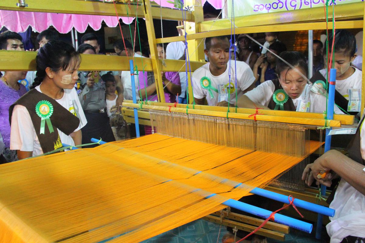 สำหรับการแข่งขันทอจีวร เป็นอีกหนึ่งประเพณี ที่พุทธศาสนิกชนในประเทศเมียนมา ให้ความสำคัญ โดยจะมารวมเเรงร่วมใจกัน ทอจีวร เพื่อนำไปถวายพระสงฆ์เเละนำไปห่มพระธาตุในงานบุญตามวัดต่างๆในจังหวัดเมียวดี นอกจากนั้นคณะศัทธายังถือว่าผู้ใดได้ทอผ้าสบง ถวายผ้าไตรจีวร จะได้อานิสงส์มาก งานนี้มีประชาชนในจังหวัดเมียวดีมาร่วมงานเป็นจำนวนมากทำให้บรรยากาศเป็นไปอย่างคึกครื้น