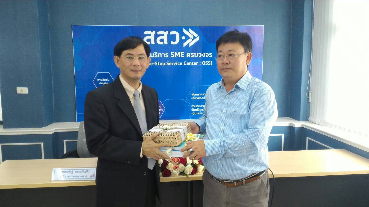 ในการนี้ นายกริชชา ฤทัยธนารัตน์ รองผู้อำนวยการฝ่ายส่งเสริม SMEs สำนักงานส่งเสริมวิสาหกิจขนาดกลางเเละขนาดย่อม (สสว.) ให้การต้อนรับพร้อมกล่าวรายงานถึงการเปิดศุนย์ให้บริการ SME ครบวงจร (SME One Stop Service Center:OSS)ประจำสำนักงานเขตพัฒนาเศรษฐกิจพิเศษจังหวัดตาก ว่า สำนักงานส่งเสริมวิสาหกิจขนาดกลางเเละขนาดย่อม (สสว.)เป็นหน่วยงานภายใต้บังคับบัญชาของนายกรัฐมนตรี ได้จัดตั้ง ทำหน้าที่ในการให้บริการคำปรึกษาธุรกิจข้อมูลการบริหารจัดการองกรความรู้ธุรกิจตลอดจนอำนวยความสะดวกเเละเเก้ไขปัญหาอุปสรรคในการดำเนินธุรกิจ SMEs โดยเน้นการให้บริการช่วยเหลือ SME เเบบครบวงจร ธุรกิจ เพื่อให้ SMEสามารถพัฒนากิจการให้บรรลุเป้าหมายทางธุรกิจซึ่งจะส่งผลต่อความเข้มเเข็งของระบบเศรษฐกิจในระดับภูมิภาคเเละของประเทศได้อย่างยั้งยืน