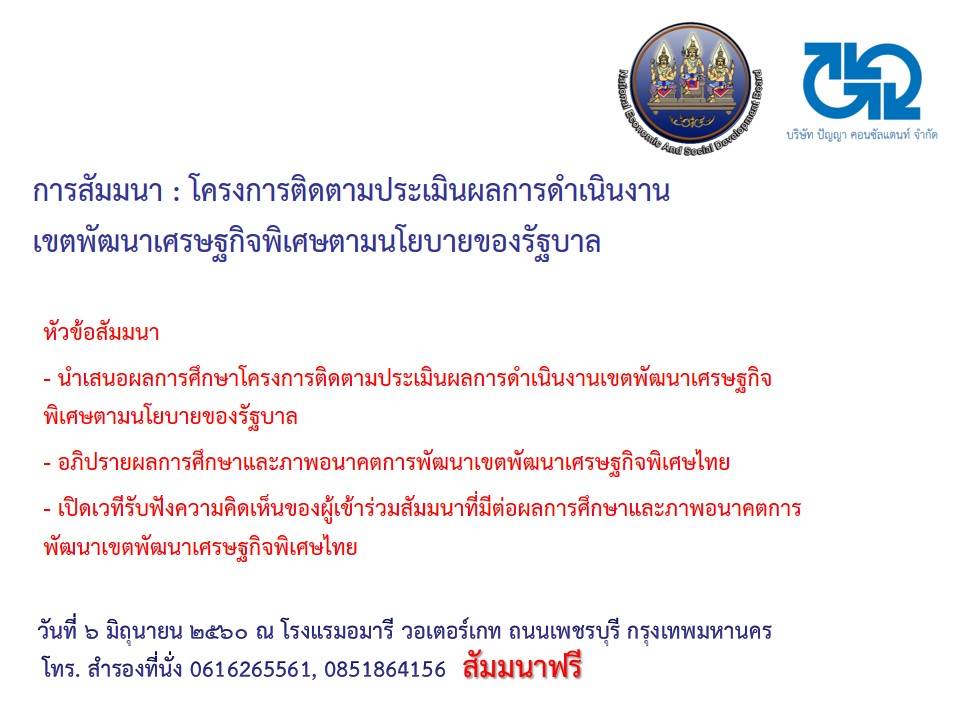 - นำเสนอผลการศึกษาโครงการติดตามประเมินผลการดำเนินงานเขตพัฒนาเศรษฐกิจพิเศษตามนโยบายของรัฐบาล