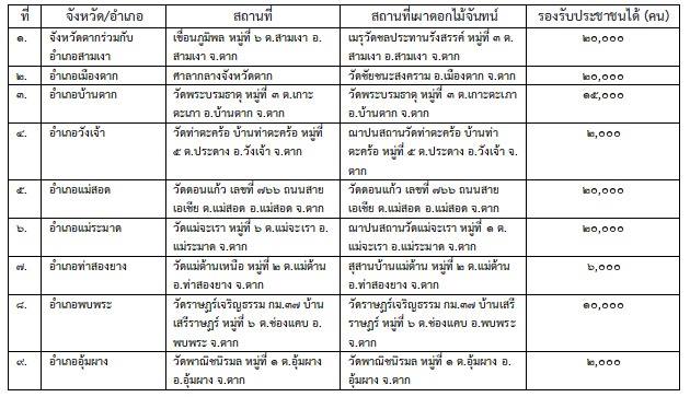 ข้อมูลจากสำนักงานจังหวัดตาก และสำนักงานประชาสัมพันธ์จังหวัดตาก